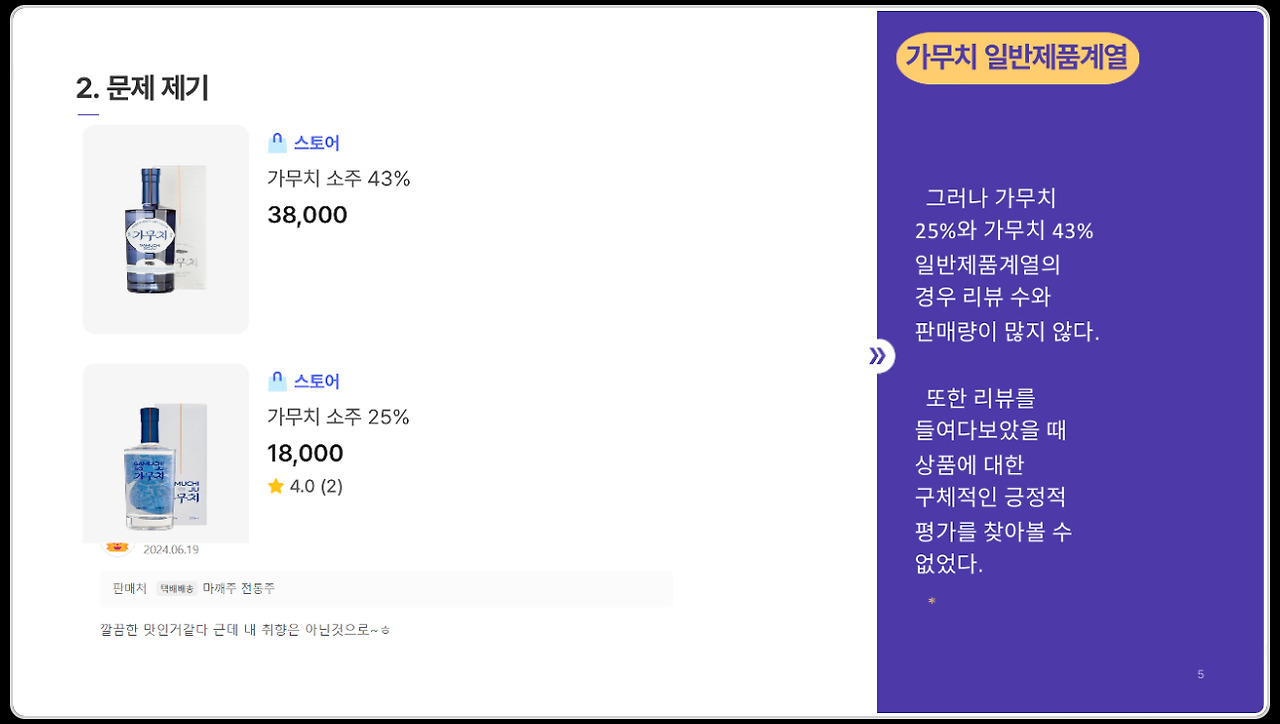 가무치의 일반제품계열의 판매량과 리뷰가 한정판 제품에 비해서 저조함을 보여주었습니다.