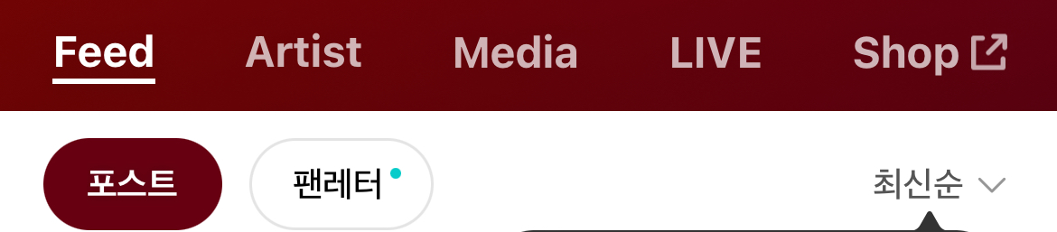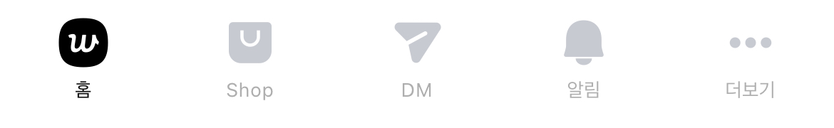 위버스의 경우 커뮤니티 홈, 위버스 샵, 위버스 dm, 알림, 더보기의 영역으로 세분화되어 있고, 커뮤니티를 선택하여 들어가면 Feed(아티스트와 팬의 포스트가 올라오는 공간), Artist(아티스트가 게시한 포스트를 모아서 볼 수 있는 공간), Media(아티스트의 공식 미디어를 모아볼 수 있는 공간), Live(아티스트가 라이브 방송을 진행하는 공간), Shop(아티스트의 굿즈를 판매하는 위버스샵으로 연결되는 공간)으로 다양한 기능들이 나열되어 있습니다.