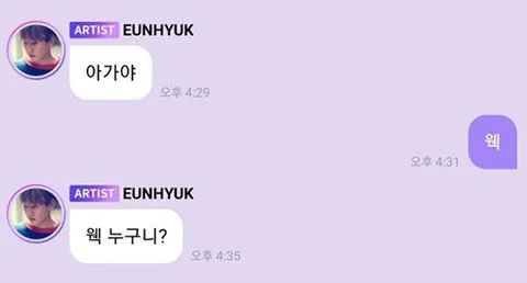 디어유 버블 서비스는 아티스트와 팬이 1:1 대화방의 형식으로 메시지를 주고 받을 수 있는 월구독형 프라이빗 메시지 서비스입니다. 구독권을 결제한 팬들은 해당 아티스트로부터 텍스트와 이모티콘뿐만 아니라 사진, 동영상, 음성메시지 등 다양한 형태의 메시지를 수신하고 이에 답장할 수 있습니다. 아래 사진은 슈퍼주니어의 은혁님과 팬이 '버블'을 통해 메시지를 주고받은 사진입니다. 한 때 웃긴 짤로 생성되어 인터넷에서 유명했던 사진이죠!