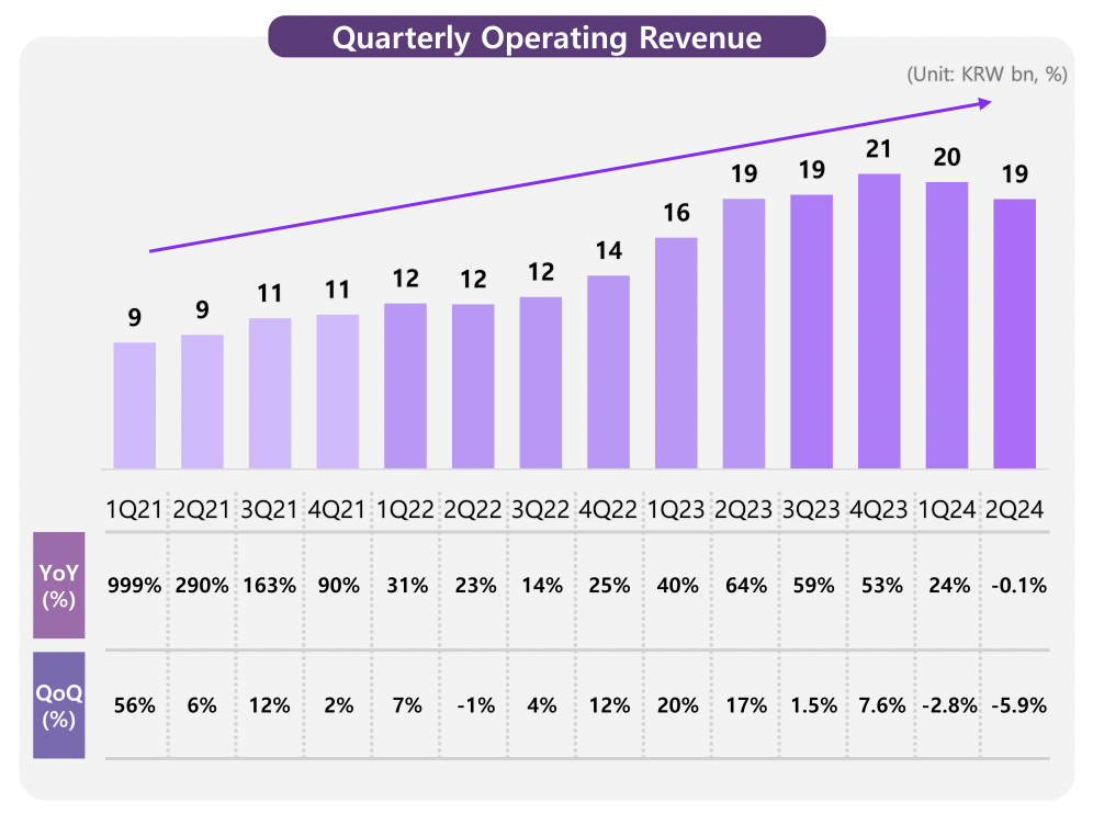 디어유는 지난해 4분기 매출 210억원을 달성한 이후로 외형 성장세가 정체되는 경향을 보이고 있습니다. 구독자 수도 지난해 230만명 수준에서 머물러 있고 올해 2분기에는 사상 처음으로 분기 매출이 감소했습니다. 디어유 버블 런칭 이후로 쭉 성장세를 이어오던 디어유는 올해 처음으로 성장 정체기를 맞이했습니다.