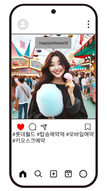 3. 인스타그램 탑승 예약제 인증 이벤트를 실시한다. 롯데월드에 방문해서 탑승 예약을 하는 사진을 찍어 롯데월드를 태그해서 SNS에 업로드한 사람들을 대상으로 추첨을 통해 롯데월드 굿즈 또는 방문 할인권을 제공한다.
