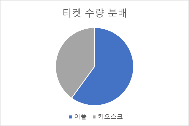 2. 온라인 예약을 하는 것이 현장에서 키오스크로 예약을 하는 것에 비해 대기 시간이 짧으므로 각 놀이기구 표 수량의 60%는 어플에 배정하고, 나머지 40%는 키오스크에 배정한다.