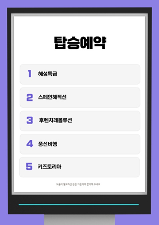 3. 예약을 한 후에는 ‘탑승 예약’ 페이지에 들어가면 예약된 티켓이 나오도록 하여 중복 예약을 방지한다.