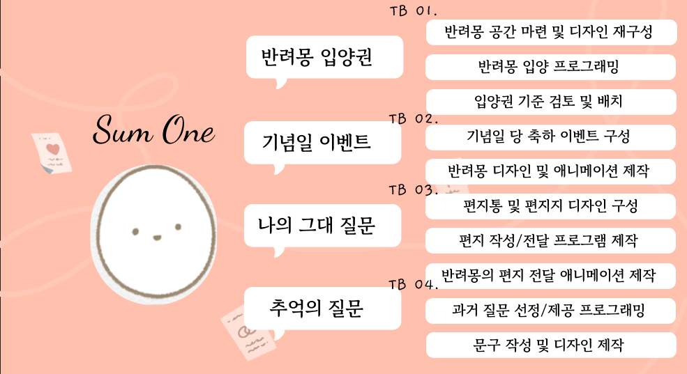 1️⃣‘나의 그대 질문’, ‘반려몽 입양’ 등 서비스별 상세한 디자인은 다루지 않는다.