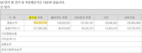 <야놀자 - 플랫폼 부문 매출액: 364,350,158>
