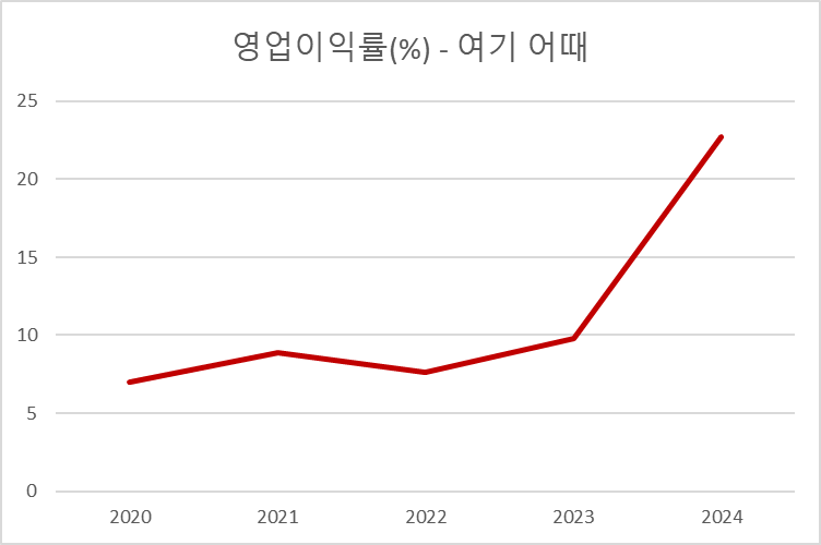 여론이 여기 어때의 호황을 점치는 이유는 24년의 높은 영업이익률뿐만이 아닙니다.