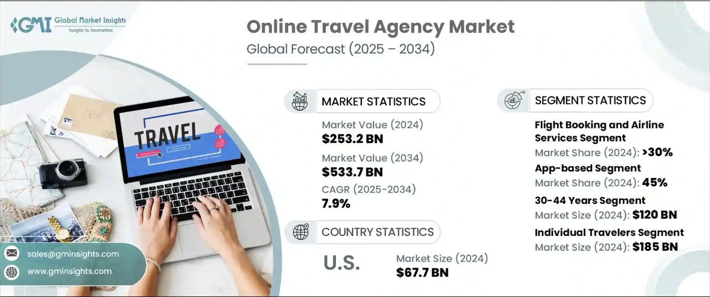 The global online travel agency market was estimated at USD 253.2 billion in 2024.
