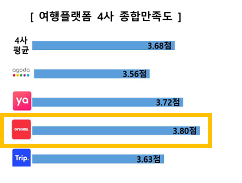 24년에는 여행플랫폼 대표 4사 중에서 만족도 1위를 달성했습니다.