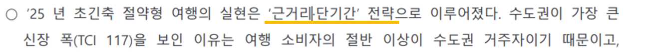 컨슈머사이트에 따르면 국내 여행은 근거리, 단거리 중심으로 이루어지고 있습니다.