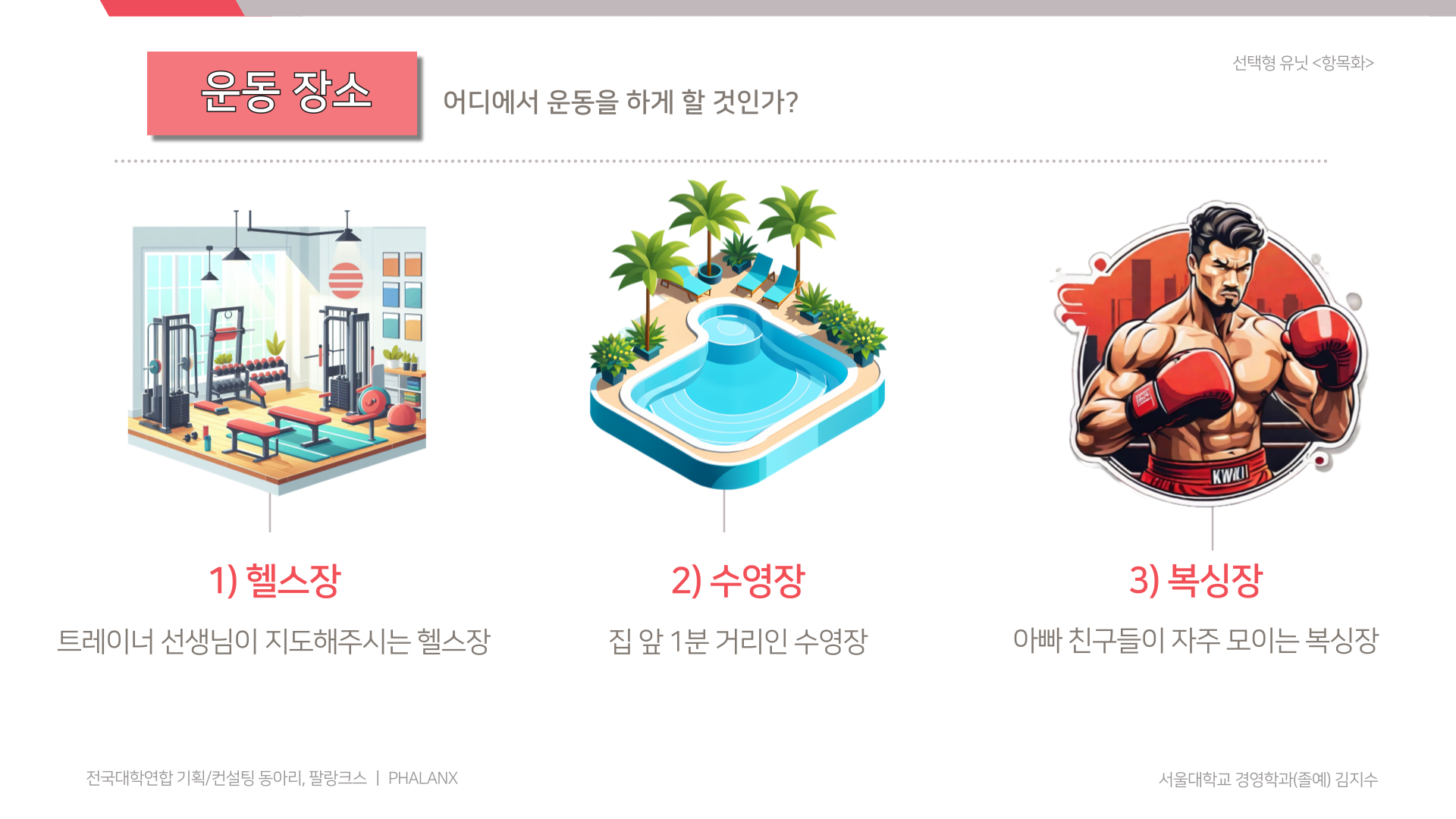 ▶항목화 할 사항: 운동 장소