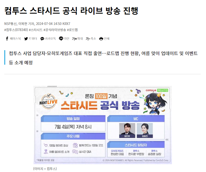 컴투스 스타시드 공식 라이브 방송 진행-NSP통신