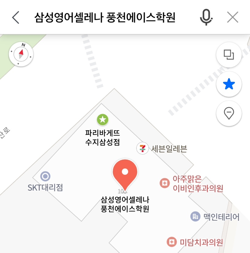 그러나 직접 이 상가 내 학원 이름을 검색해보면 "삼성영어셀레니 풍천에이스학원" 이 실제로 있음을 알 수 있습니다. 즉, 네이버 지도 내에는 등록되어 있으나 모두 보여지지 않는 경우가 많습니다.