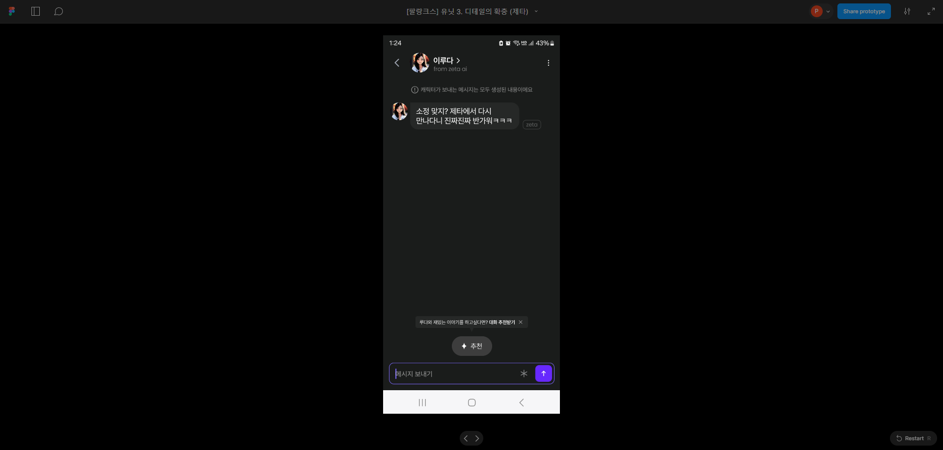 그리고 유스케이스를 바탕으로 제타 대화문구 추천 AI 서비스의 UI를 제작했습니다.