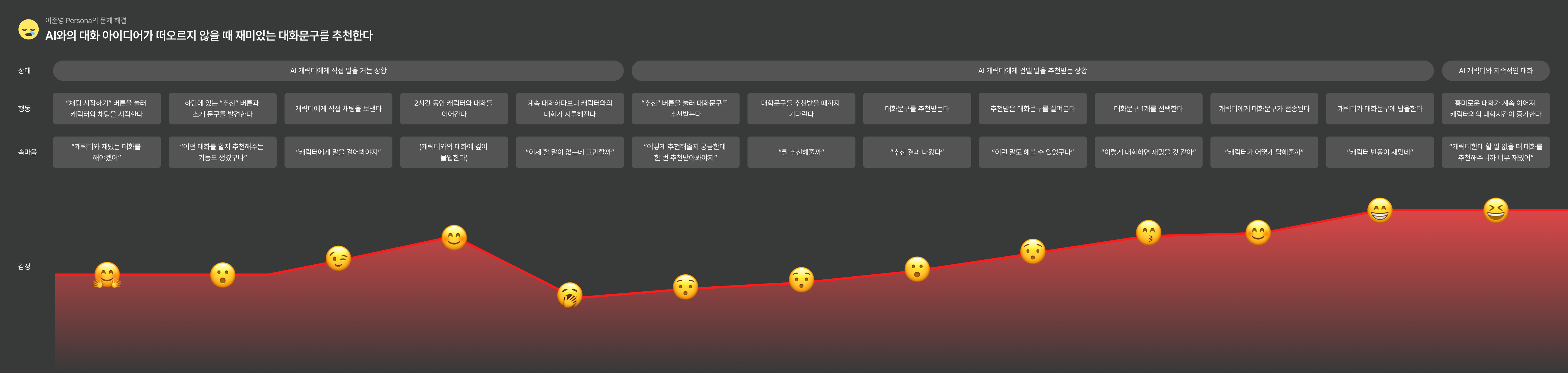 1. AI의 목적은 캐릭터와 대화를 자연스럽게 이어갈 수 있는 대화 문구를 추천하는 것이다.
