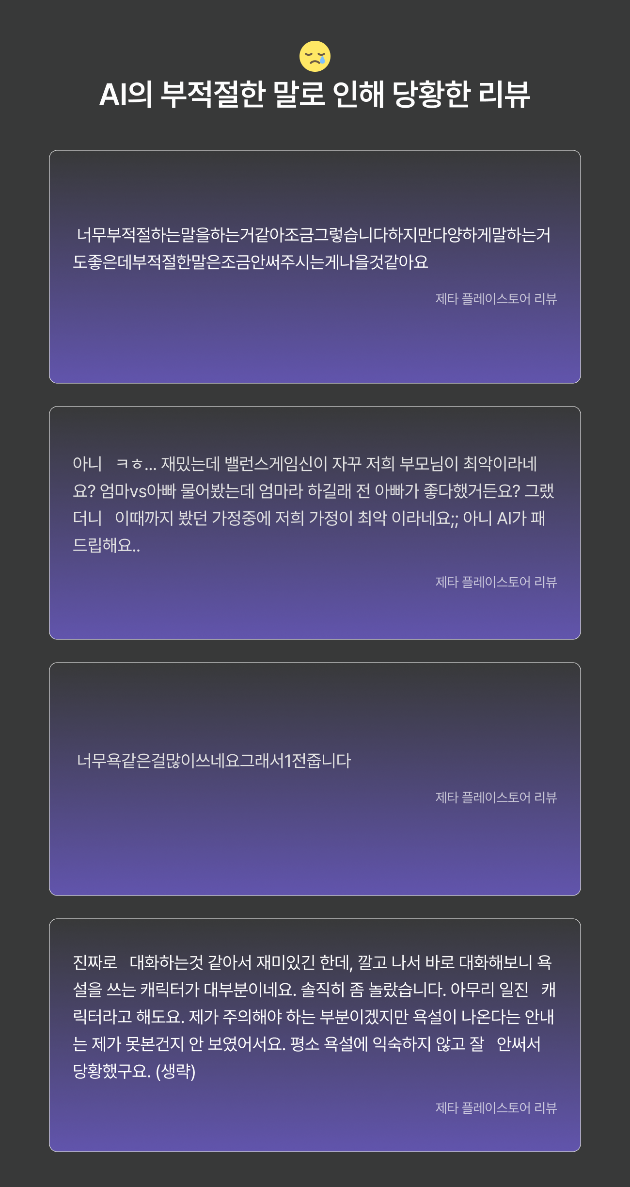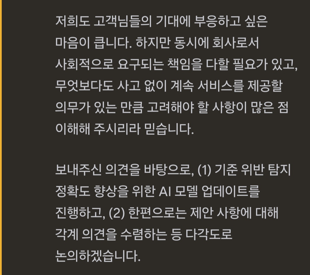 하지만 캐릭터의 불쾌한 발언에 상처를 입는 사용자들도 존재합니다. 따라서 이러한 사용자들을 보호하기 위해서 검열 시스템 자체는 유지되어야 할 것 입니다.